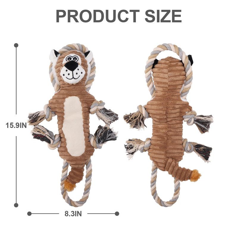 Nopisen Dog Squeaky Toys,Plush Toy for Aggressive Chewers,Indestructible Dog Squeaky Toys,Tug of War Dog Toys,Stuffed Animals Toys with Cotton Material and Crinkle Paper (Lion)