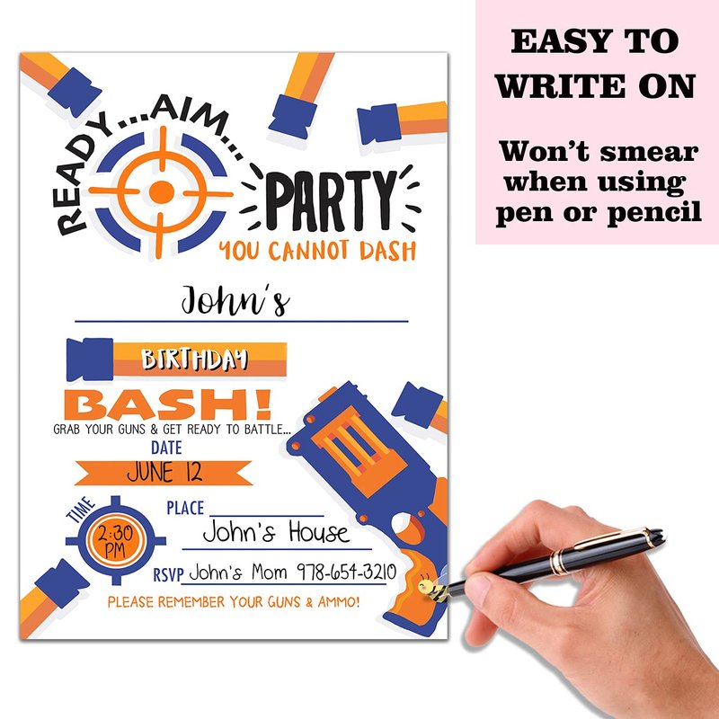 Nopoben Birthday Party Invitation Cards, Water Guns Party Celebration, Water Blaster Bash,Party Supplies, Favors, 20 Cards With 20 Envelopes – (B01)