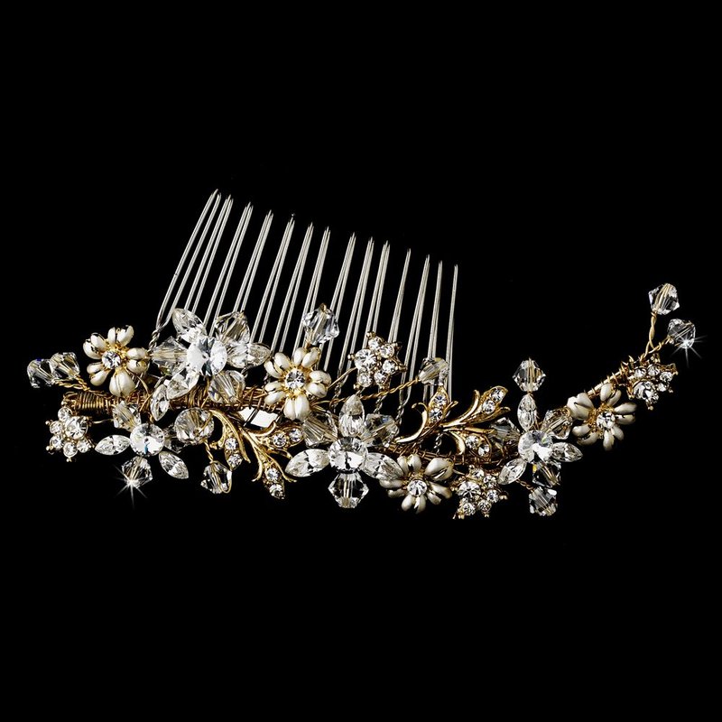 Nora Striking Floral Bridal Hair & Austrian Crystals Wedding Bridal Hair Comb (silver)