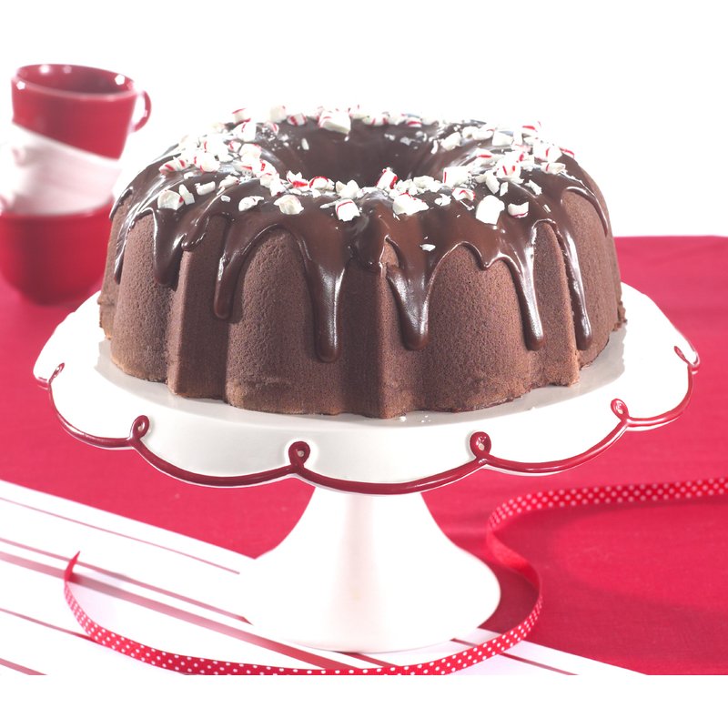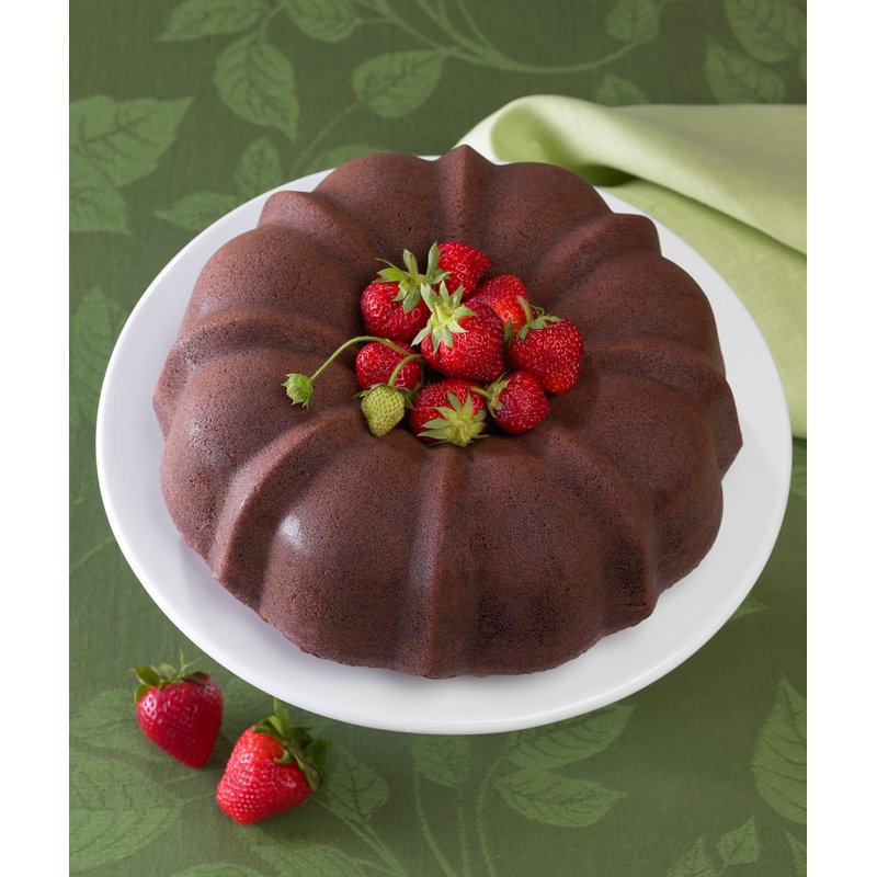 With non-stick coating, this baking pan allows for easy release and effortless cleanup. Made in the USA of strong but lightweight aluminum. 6-cup Bundt pan. 1.4 liter, 8 inch x 2-3/4 inch high.