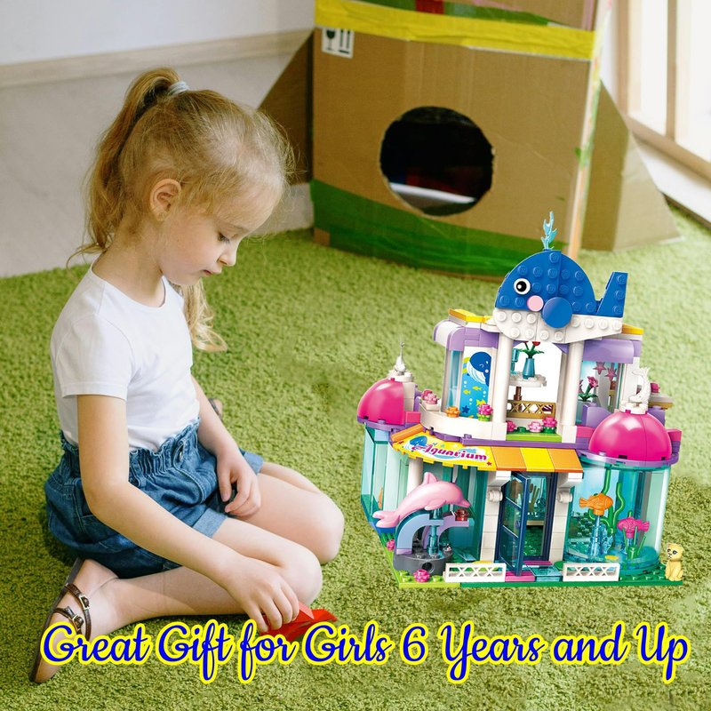 - 🐳【Open Back, Easy for Girls to Play】: The back of the aquarium is an open design, which will be convenient for girls to play, letting girls see the inner structure of the aquarium as well as the plants and fish inside the tanks; it is convenient for girls to stick their fingers inside the building and play, girls can put in their own minifigures, play tourists visiting the aquarium scene with their friends, and have a drink in the lounge.