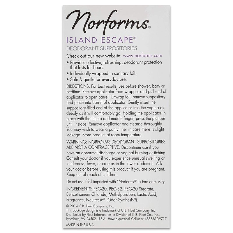 Norforms Feminine Deodorant Suppositories, Long Lasting Odor Control, Island Escape Scent, 12 Count (Pack of 3)