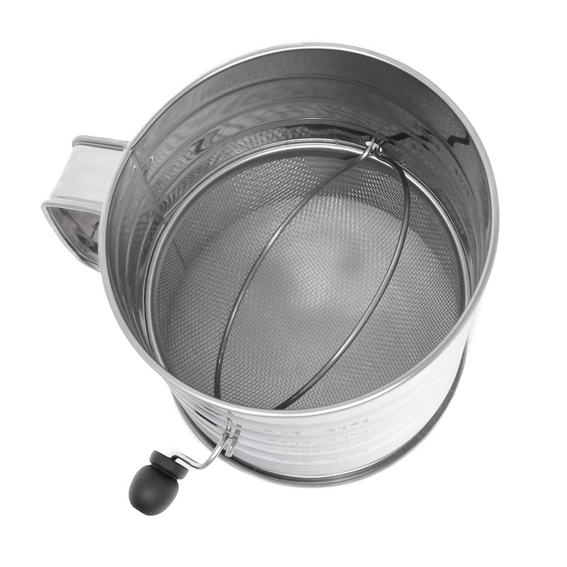 - Volume markings can be seen on the inside and outside of the sifter