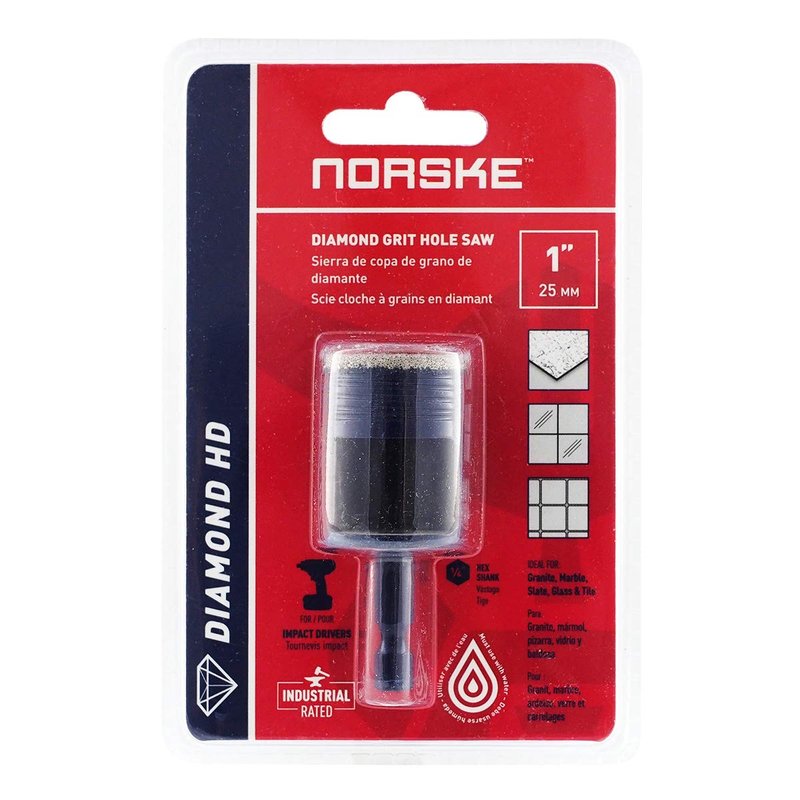 Norske Tools NDHSI123 1 inch (24mm) Industrial Quality Vacuum Brazed Diamond Drill Bit Hole Saw for Tile, Stone, Glass, Brick, Block and Cement Backer Board