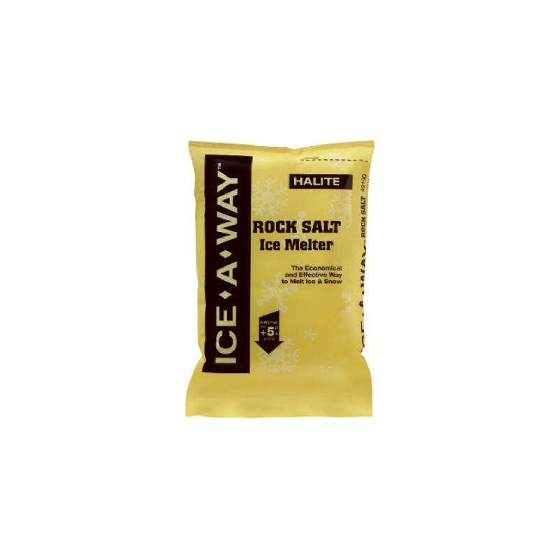 Ice-A-Way, 50 LB, Standard De-Icing Rock Salt, Contains Primary Sodium Chloride Rock Salt, Economical, Melts Effectively To +5 Degree Fahrenheit, Poly Bag.