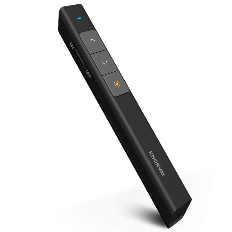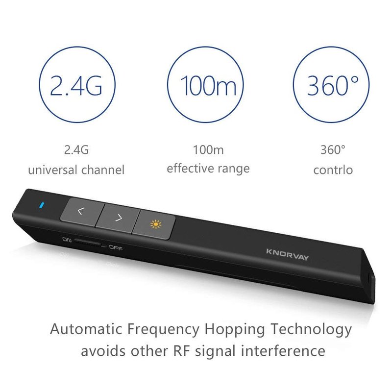 - Red Light & Long Control Distance:Adopting red light 2.4GHz wireless RF,the presentation clicker has a wireless range of up to 100M/328FT and maximum distance of 200M/656FT for the red light.The laser pointer can clearly point out the focus of the presentation, which lets you move freely around the room.