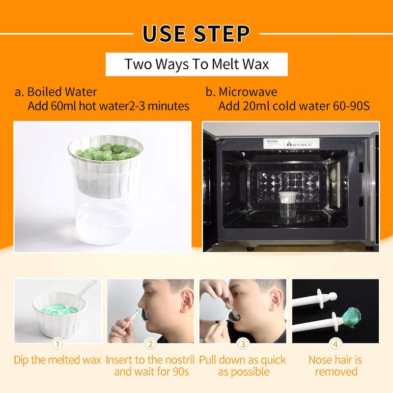 - Easy & Quick: Our nose wax kit will remove hair from your nostrils in seconds, giving you a quick and efficient way to eliminate unwanted hair. All done in a simple painless procedure. Simply dip the applicator in warm wax, dip into the nostril, and pull out within two minutes.