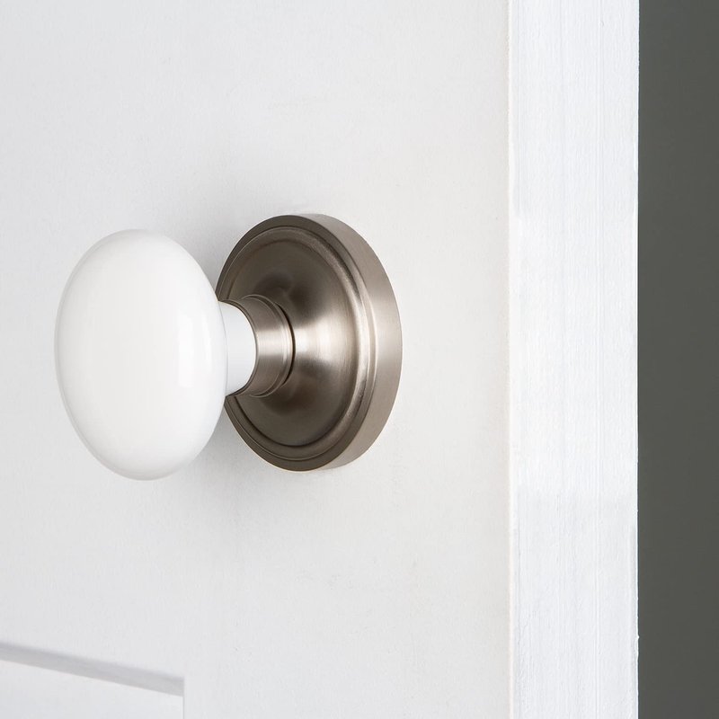 - Clean, Tailored Style - Our Classic Rosette Passage round door handle adds a touch of elegance to any home; The simple porcelain knob offers beauty and durability that will complement a variety of architectural styles