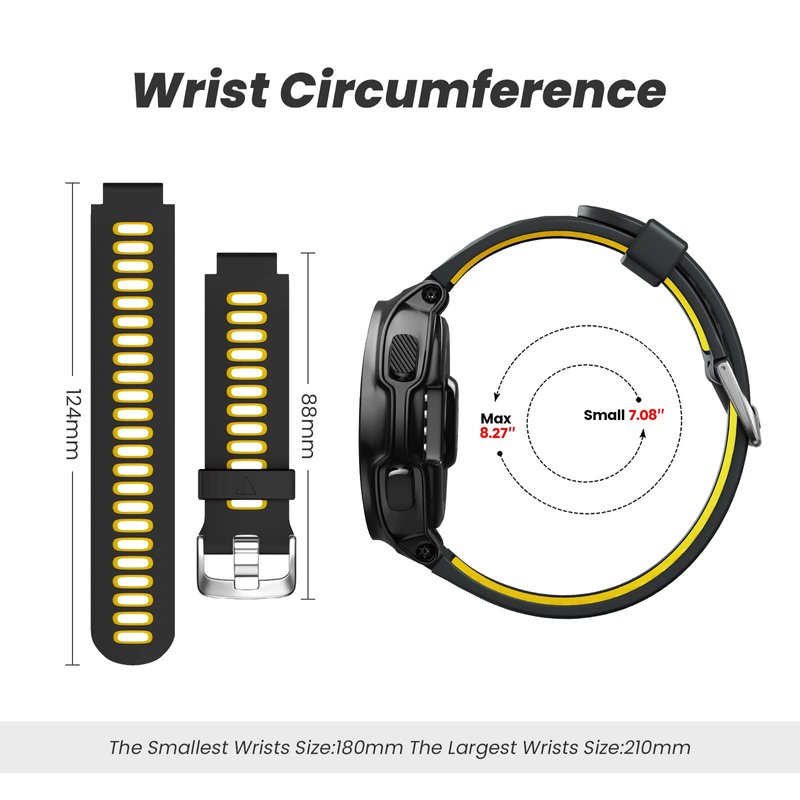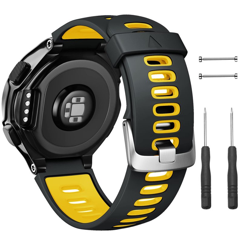 NotoCity Silicone Watch Band Replacement Solft Silicone Strap Compatible Forerunner 230/220/ 235/620/ 630/ 735XT/ Approach S20/ S5/ S6-Black Yellow