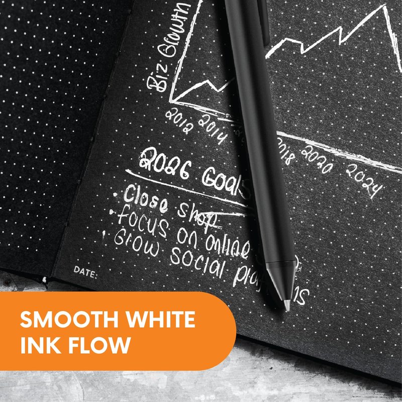 - Bold White Lines (1.1mm): Our wider point size creates stunning, highly visible strokes that command attention on dark surfaces - perfect for dramatic lettering and eye-catching designs