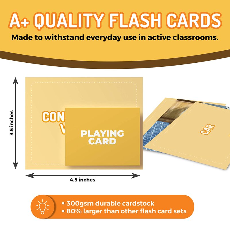 - FUN AND INTERACTIVE LEARNING - These vocabulary builder flash cards contain vivid and real photos for better engagement. Our learning flash cards are a fun and creative way to learn nouns quickly and effectively.