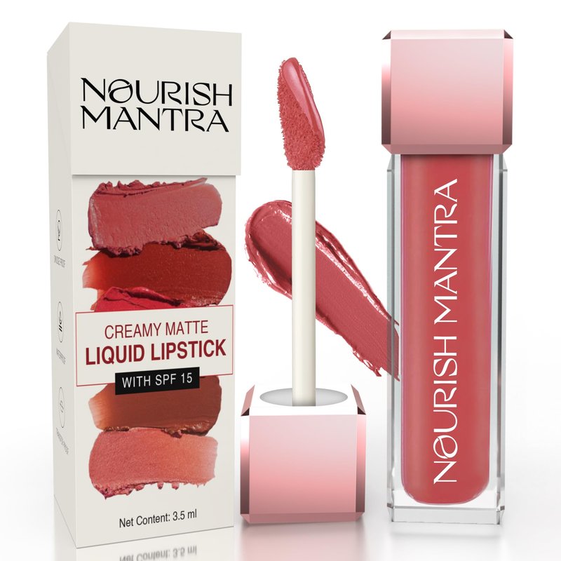 NOURISH MANTRA Masoom Pink Lipstick (3.5ml)/ Creamy Matte Liquid Lipstick with SPF/Water Proof/Smudge Proof/Transfer Proof/Long Lasting/Suits All Skin Tones