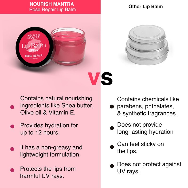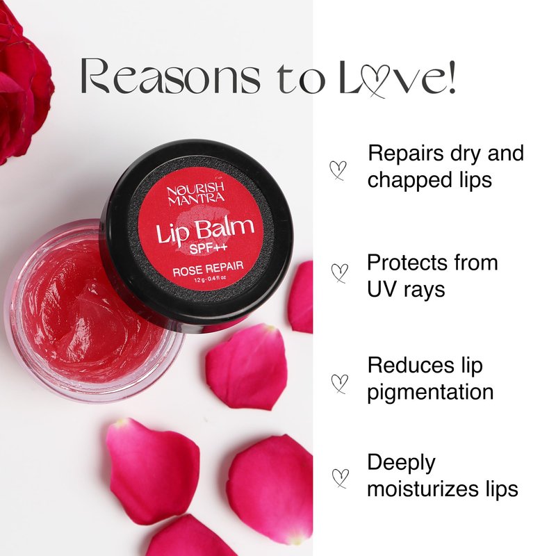 Nourish Mantra Rose Repair Lip Balm with SPF | Made with Rose Extracts, Olive oil, Shea Butter, Vitamin E & Avocado Oil | For Dry, Chapped and Dark Lips | Best for Both Women and Men | 12g
