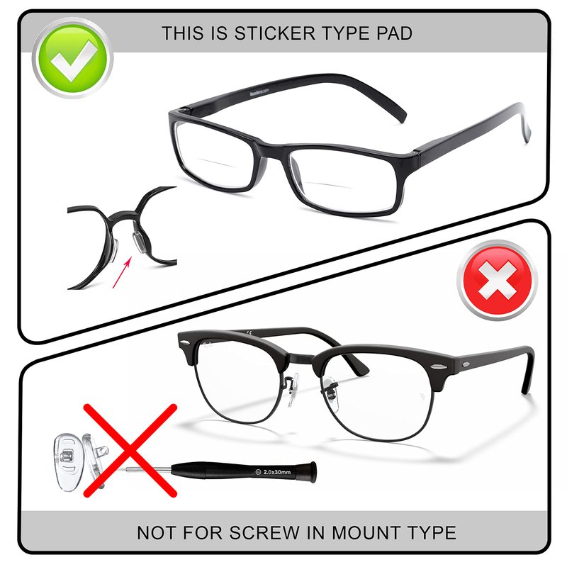 - 【Wide Application】 You can use these nose pads for prescription glasses, reading glasses, wireframe glasses, sunglasses and safety glasses etc. Installation of these nose pads requires no tools, such as screws, screwdrivers, etc