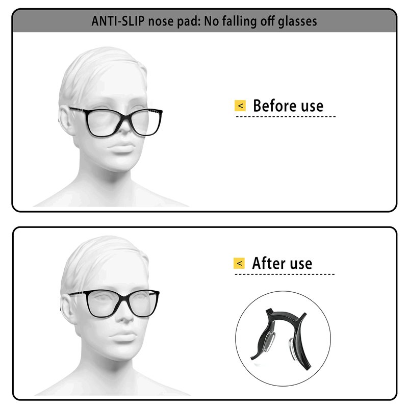 - 【Easy Using】 the self-adhesive nose pads are easy to apply. Simply peel and stick to your eyeglasses. It can reduce the space between the nose and the frame. Your eyeglasses will stay in place and you'll feel more comfortable wearing them