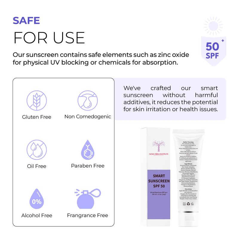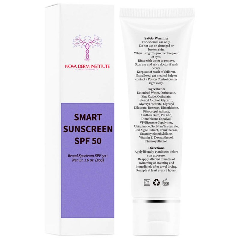 NOVA DERM INSTITUTE Smart Sunscreen Daily SPF 50 Face Sunscreen - Clear Zinc Oxide, Oil-Free & Non- Comedogenic for Sensitive Skin and SPF for acne-prone skin and Dermatologist Recommended