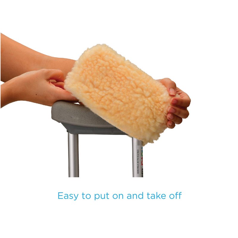 - RELIEVE THE DISCOMFORT of using crutches with comfortable padded Sheepskin covers for the underarm and handgrips on your crutches. Your set includes one pair of each underarm and hand grip covers.