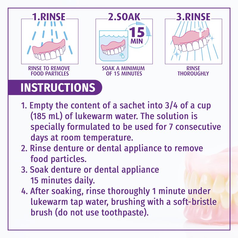 - EACH SACHET LASTS FOR 7 DAYS: Add one sachet to ¾ of water and soak your appliance in and out daily for 1 full week. No more daily hassles of changing your soaking solution.