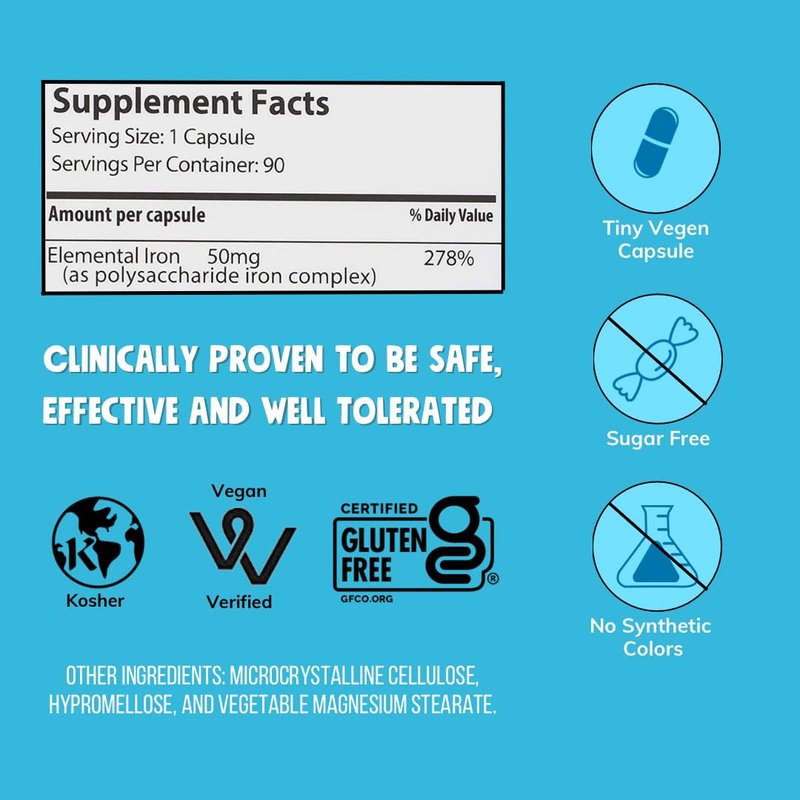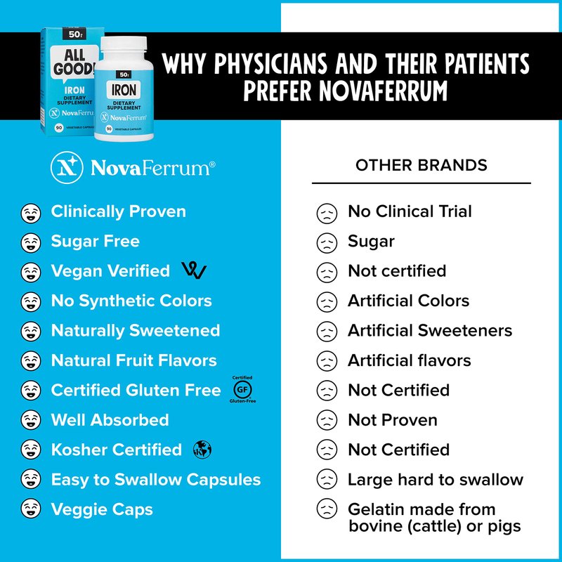 NovaFerrum All Good | Iron Supplement for Adults | 50mg of Iron Per Capsule | Supplement for Iron Deficiency in Men & Women | Vegan Verified | Gluten Free Certified | Sugar Free | 90 Count