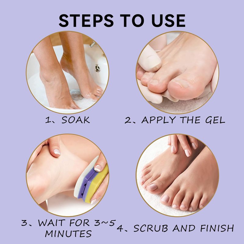 - Easy to Use--Simply soak your feet, apply our foot callus remover gel, and gently buff away calluses with your favorite foot scrubber or other pedicure supplies. Enjoy smooth and baby soft feet effortlessly. It will become your powerful pedicure foot spa products.
