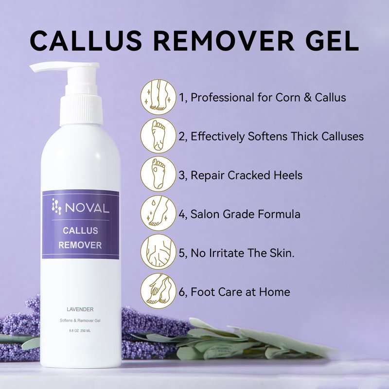- Non-Alcoholic Foot Callus Softener--Unlike other callus remover gel, NOVAL callus remover for feet gel does not contain alcohol, so people with sensitive skin can use it with confidence. It can not only effectively soften callus, corns, cracked skin, but also avoid dryness, redness or stinging of the skin.