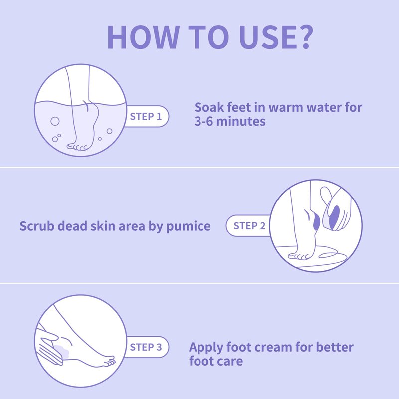 - NO STIMULATION: Natural way to feet scrubber dead skin foot pumice . No stimulation to skin. Never worry about liquid chemical callus remover gel hurting your feet.To use, soak callused skin in warm water until it feels soft. Then wet the foot pumice stone in soapy water and rub it gently over the callus in a circular motion.