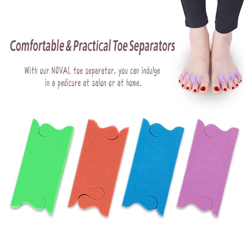- ✔ Value Pack: Our NOVAL LARGE VALUE PACK of 60 Toe Separators equates to only $0.15 each. Our toe separators pedicure are made of high-quality EVA foam, which is comfortable, safe and skin-friendly, the material is also very durable, so you can always get perfect feet with minimal effort!