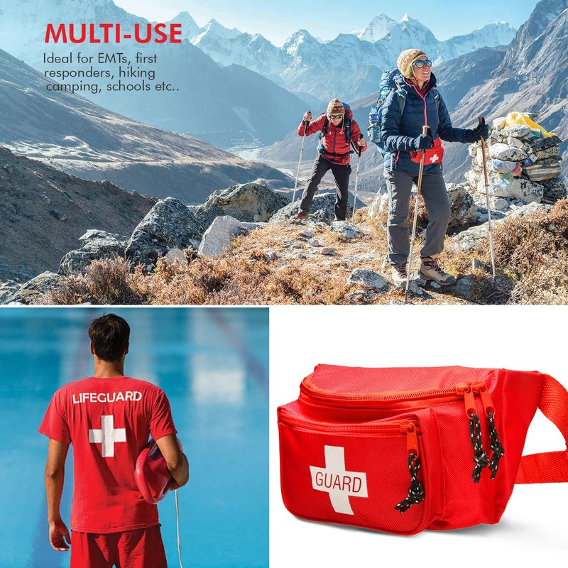 - FIRST AID WAIST PACK - Is ideal for lifeguards working at a beach or pool, or hikers looking to keep their equipment and personal belongings well organized and easily accessible.
