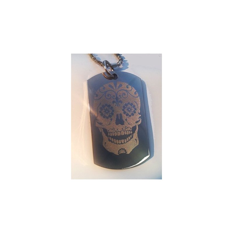 Novelty Sugar Skull Tattoo Logo - Military Dog Tag Luggage Tag Key Chain Metal Chain Necklace