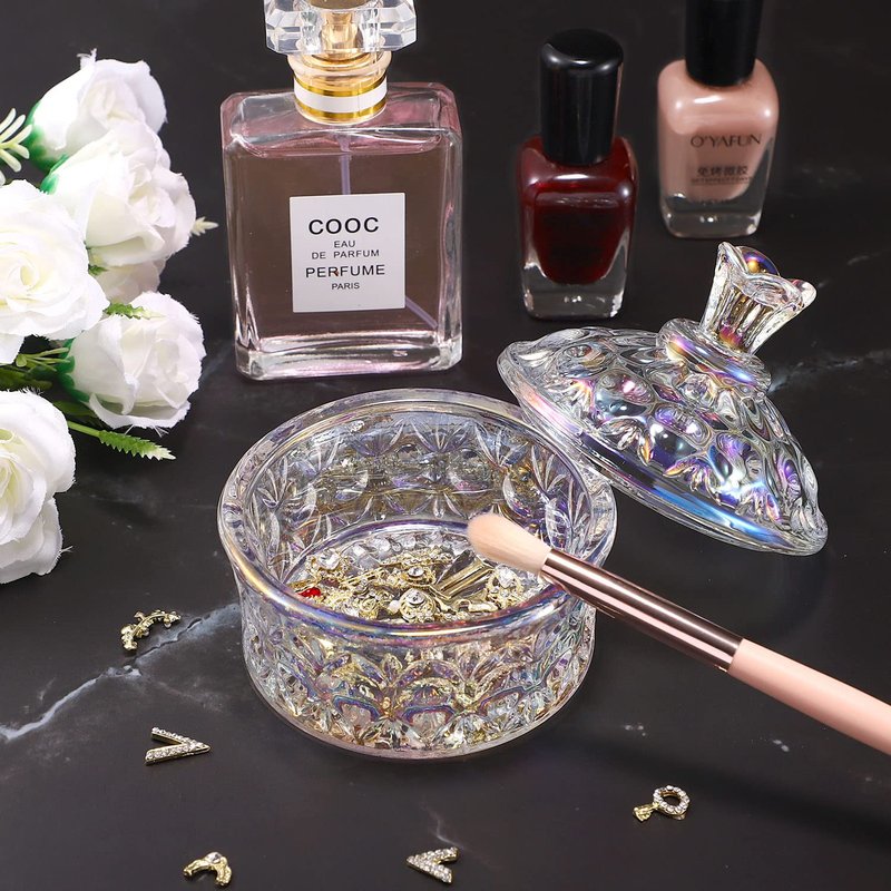 Noverlife Glass Nail Dappen Dish with Lid, Dazzling Crystal Dappen Bowl for Holding Nail Art Acrylic Liquid & Powder, Nail Art Glassware with Lid for Nail Decor Manicure Care, Dappen Monomer Holder