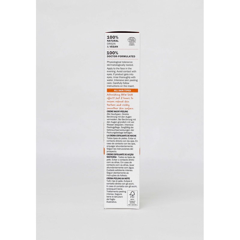 - OVERNIGHT SKINCARE MAGIC. Our peeling treatment combines gentle exfoliating ingredients, hyaluronic acid and natural vitamin C to give you smoother skin and a radiant complexion when you wake up. Noticeable effects without a costly trip to the spa.