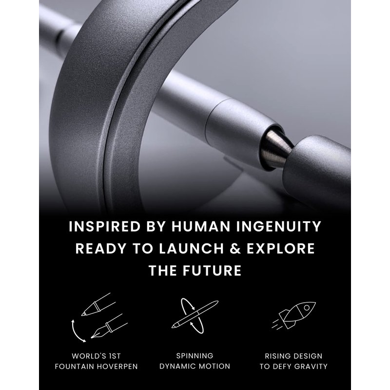 - The Centerpiece on Your Desk: Inspired by human ingenuity and engineered to defy gravity. Hoverpen Future is an allusion to humankind's infinite potential. Balancing on a pinpoint at a 60 degree angle, an occasional glance will wash you with a wave of Zen-like calm from its minimalistic, futurism-inspired design.