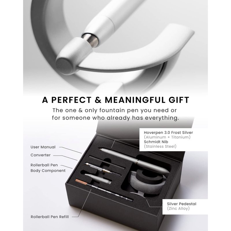 novium Hoverpen Future Edition - Fountain Pen & Rollerball Pen All-In Gift Box, Fine Nib, Futuristic Aesthetic, Metal Made Luxury Pen, Free Spinning Executive Pen, Mens Gifts Ideas (Frost Silver)