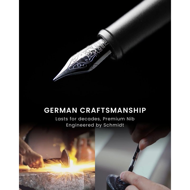 - Addictivve & Silky Writing Experience: Your creativity needs to flow uninterrupted. This 2-In-1 Set comes with extra rollerball pen grip. High-quality rollerball cartridge, and stainless steel fountain pen nib historical Germany pen company with over a century of experience in craftmanship excellence. Thanks to their exquisite inflow design, pure, unbroken lines of thought jump forth from the pen to paper without spills, spotting, or explosions.