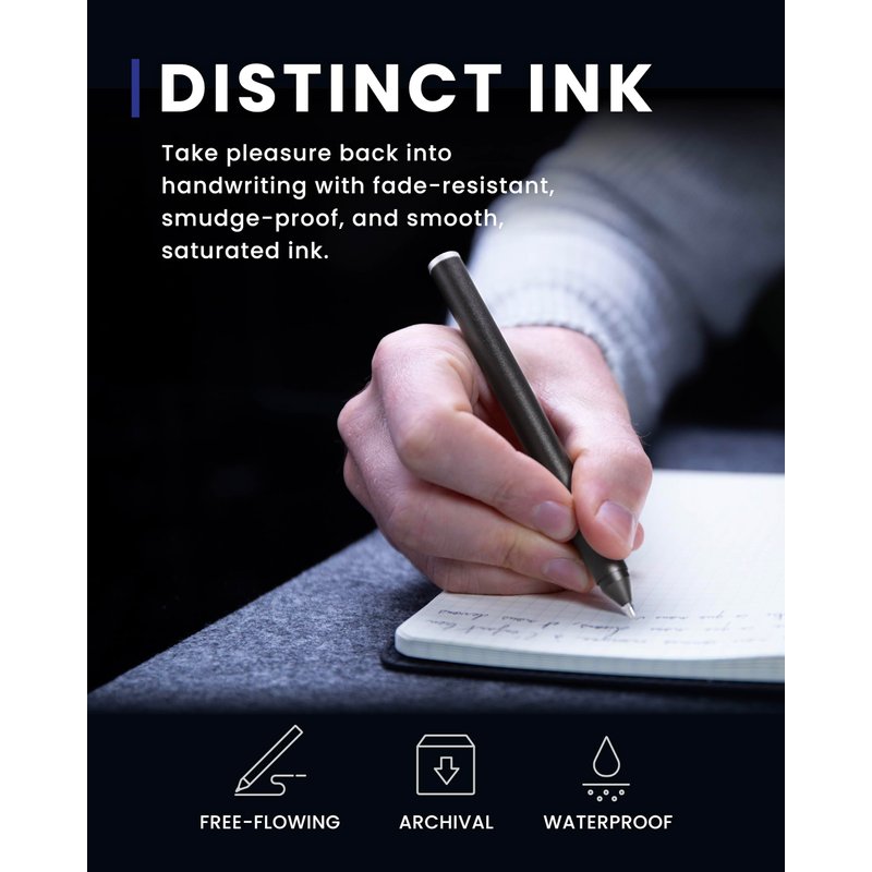 - Waterproof Free-flowing Ink. Experience easy-glide writing every day with our archival ink that won’t bleed and lasts a lifetime. Refills are easy, too, with the pen cartridge’s quick-reload design.