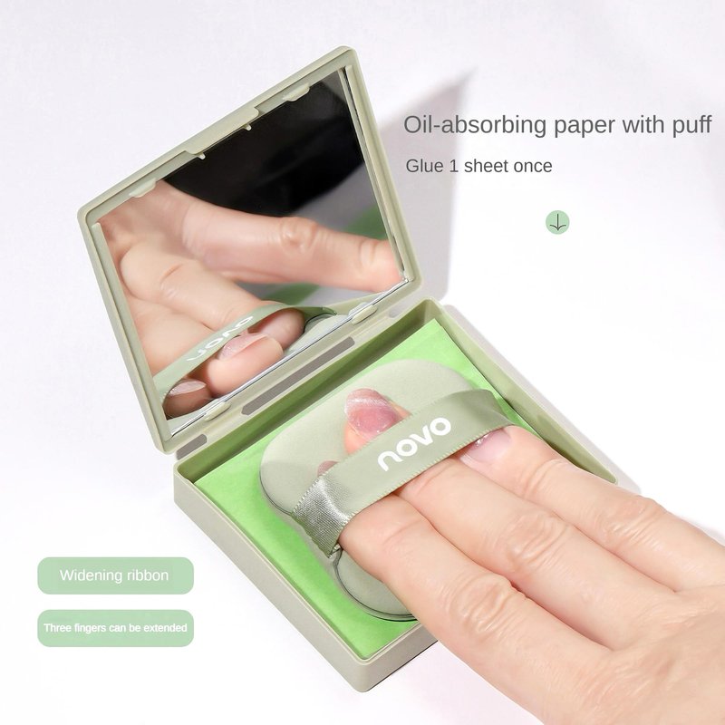 - 3-in-1 Design: Combines oil blotting paper, a powder puff, and a mirror in one convenient design for on-the-go oil control.