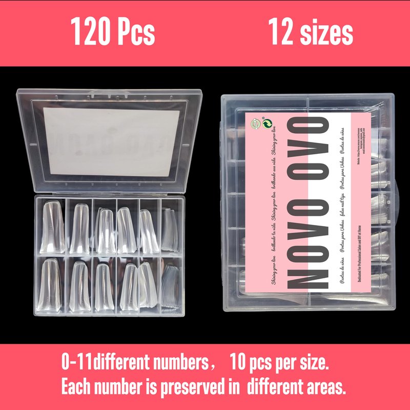 - 👍ENVIRONMENTALLY FRIENDLY: All our nail tips are made from harmless materials, are cruelty-free, and never tested on animals. In addition, NOVO OVO is actively involved in the Packaging Recycling System in Europe and strictly adheres to European standards for reusable packaging.