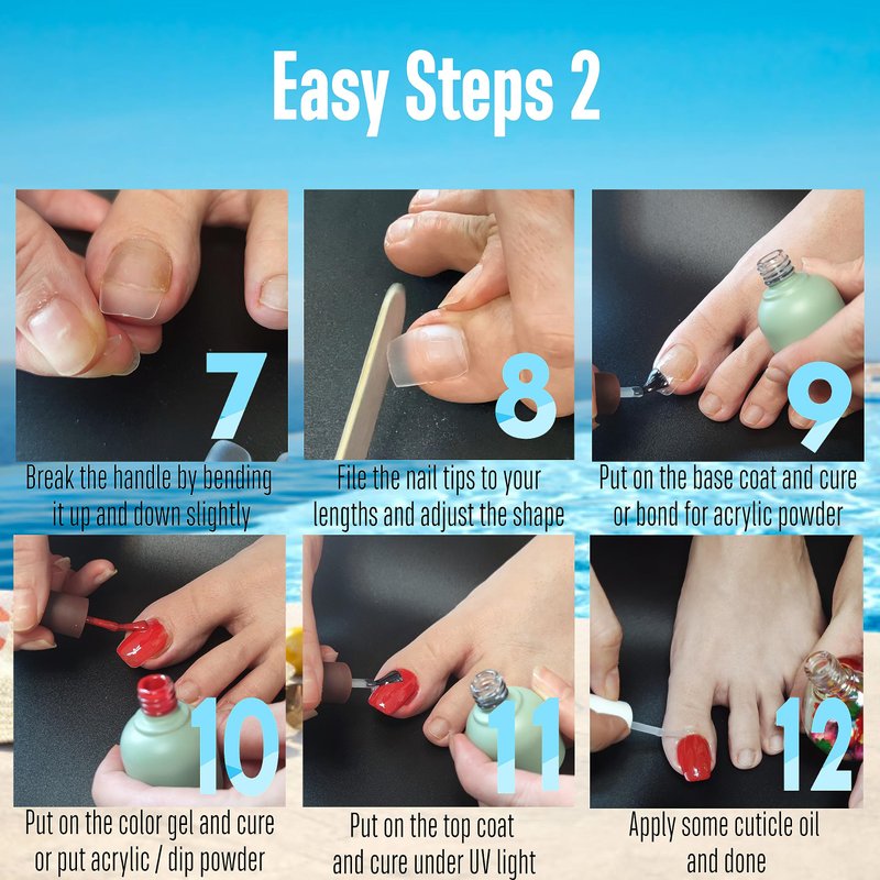 - 💅🏻VERSATILE AND POPULAR: These nail tips are designed for wearing with open-toe shoes like flip flops, sandals, and slippers. They are also perfect for enhancing the look of high heels and even flaunting them with bare feet. Get ready for a fabulous pedicure this summer and make a statement at the beach or swimming pool. They also make a fantastic gift for your girlfriend, wife, or family members