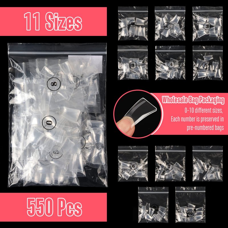 - 👍VARIOUS SIZES OPTIONS: 11 Varied Sizes, Pre-numbered: NOVO OVO 550 Pcs Duck Nail tips, includes 11 sizes, which fit most of finger sizes generally. Each size is separately packed in pre-numbered bag. Fit for smaller fingers, wider thumbs and flat nail beds. Each nail tip has the pre-number at the tip for you to distinguish easily and reserve.