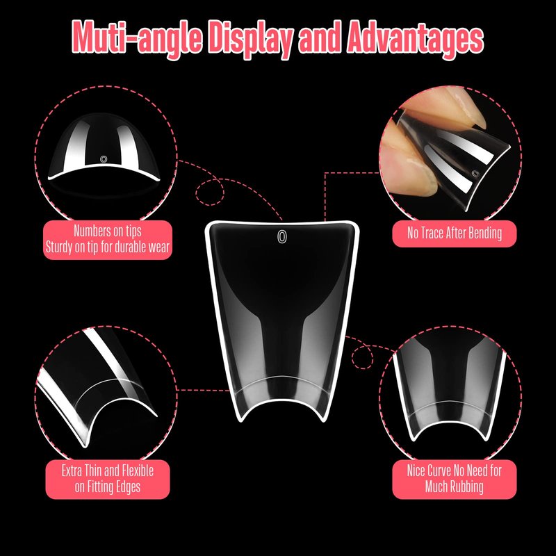 - 👍GREAT QUALITY: High standard ABS plastic for professional use and DIY at home. The ABS material is light weighted and designed with half cover shape, resulting in the most natural custom fit and comfortable wear. The nail tips can be trimmed, filed to your liking.