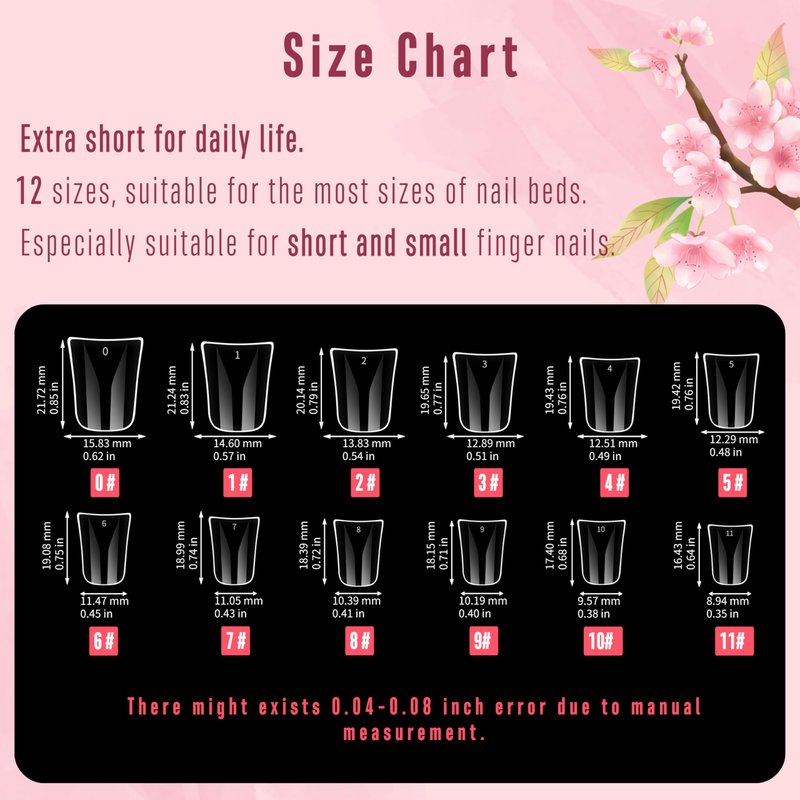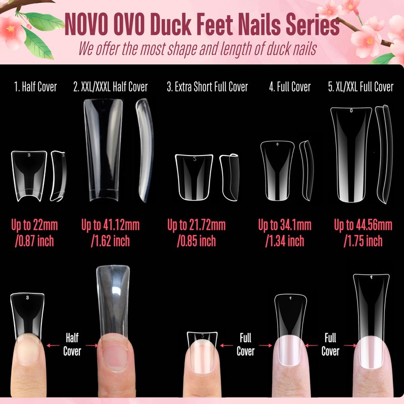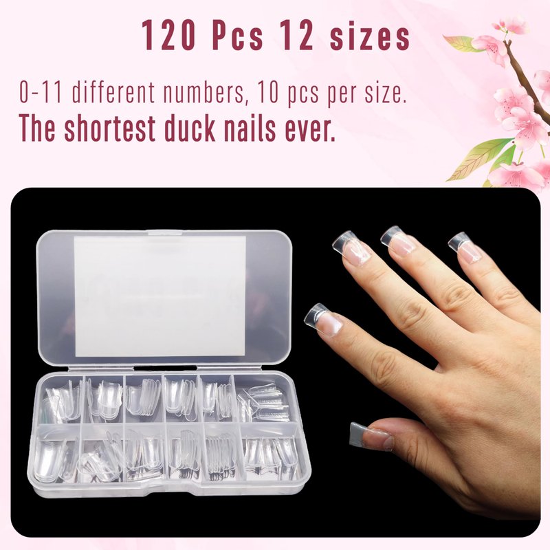 - 👍 SHORT DUCK NAILS WITH COMPLETE COVERAGE: Our nail tips are uniquely designed with a shorter length, providing ultimate comfort for everyday wear. No longer will you have to trim them down from Medium, Long, XL, or XXL lengths - our short duck nails are ready to use right away. If you prefer an even shorter length, simply file them down to your desired size while still maintaining their distinctive flare shape.