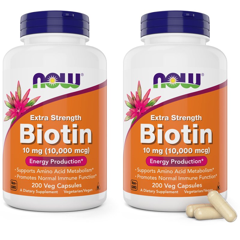 NOW Foods Extra Strength Biotin 10000mcg / 10 mg - 200 Veg Capsules (Pack of 2) - Hair, Skin, Nail - Supplement for Men and Women - B7 Vitamin - Vegetarian, Vegan, Non-GMO