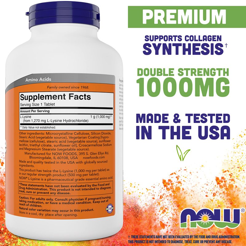 Now Foods L-Lysine 1000mg - Double Strength - 300 Tablets - Non-GMO Amino Acid Supplement (Llysine Hydrochloride)- 1000 mg Tabs - Vegan/Vegetarian