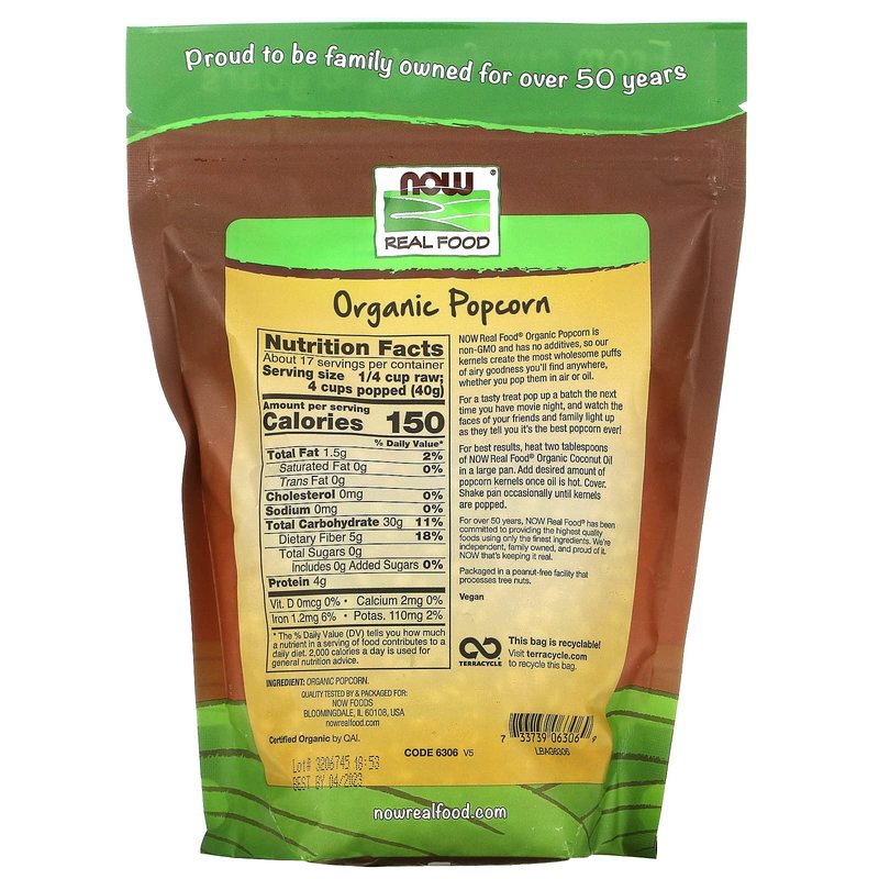 - NO ADDITIVES OR PRESERVATIVES: NOW Real Food Organic Popcorn is non-GMO and has no additives, so our kernels create the most natural and wholesome puffs of airy goodness you'll find anywhere, whether you pop them in air or oil.