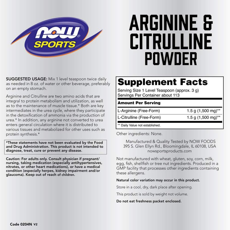 NOW Foods Sports Nutrition, Arginine & Citrulline Powder, 1:1 Ratio, Amino Acid, 12-Ounce