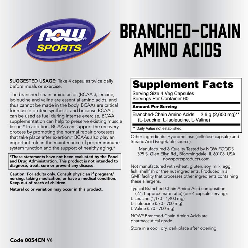 NOW Foods Sports Nutrition, Branched Chain Amino Acids, With Leucine, Isoleucine and Valine, 240 Veg Capsules