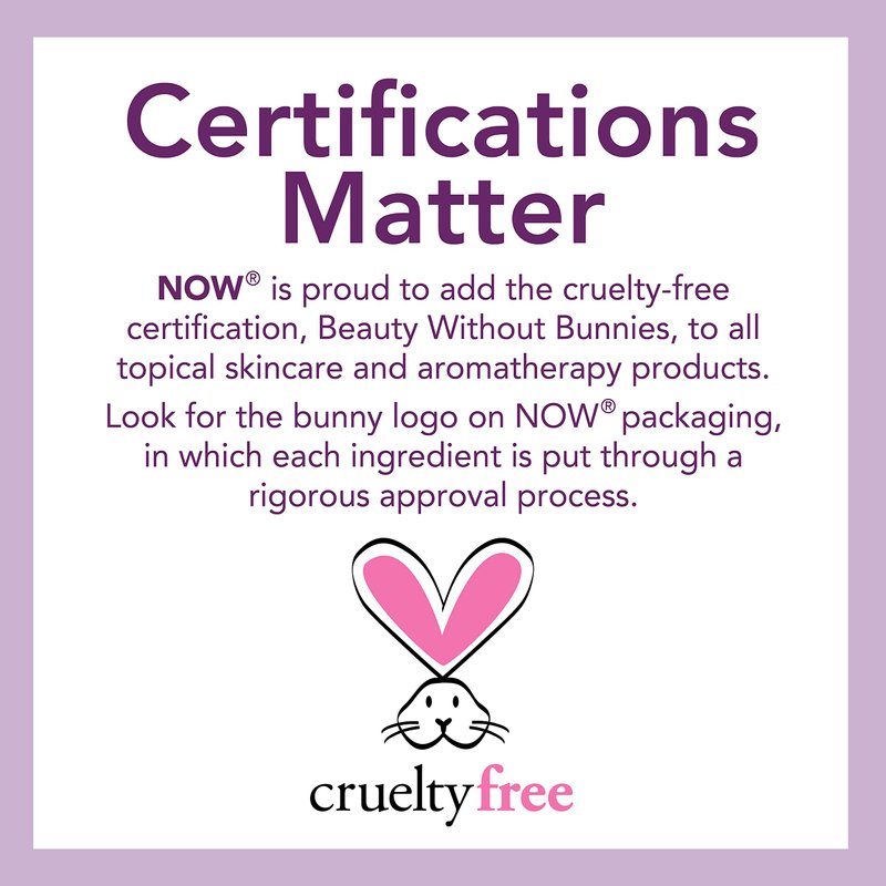 - CRUELTY FREE: NOW never tests ingredients or finished products on animals.