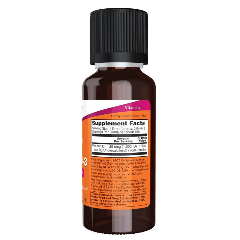 NOW Supplements, Liquid Vitamin D-3, Extra Strength, Structural Support*, 1-Ounce