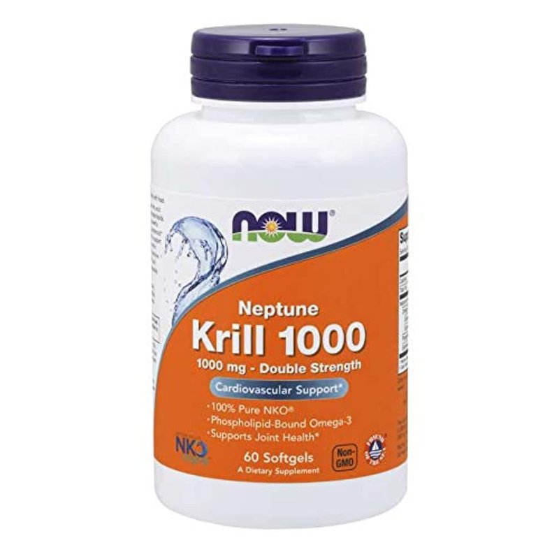 - DOUBLE VALUE PACK! You are buying TWO of NOW Foods - Neptune Krill 1000 Cardiovascular Support Enteric Coated Double Strength 1000 mg. - 60 Softgels Cardiovascular Support 1,000 mg - Double Strength Enteric Coated 100% Pure, Patented NKO? Supports Joint Health Potent Antioxidant* A Dietary Supplement Neptune Krill Oil (NKO?) is kNOW for its unique fatty acid (FA) profile, as well as for its rich antioxidant content.