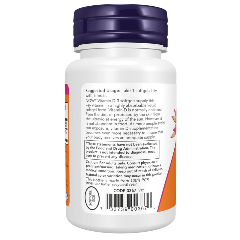 NOW Supplements, Vitamin D-3 2,000 IU, High Potency, Structural Support*, 120 Softgels